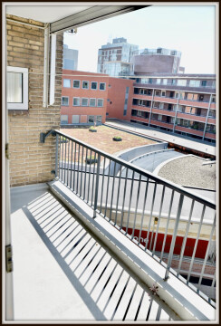 Centrale entree met lift en trappen. Huisingang; hal met toegang tot alle vertrekken; woonkamer met en suite de eetkamer met inbouwkasten welke ook als slaapkamer kan fungeren. slaapkamer, met inbouwkasten; keuken met koelkast, vriezer, oven, kookplaat, veel bergruimte en plek om wasmachine/droger/vaatwasser te plaatsen. Badkamer met douche, wastafel, handdoekradiator; apart toilet met fonteintje; zonnig balkon op het zuiden; opslagruimte beneden in het gebouw.